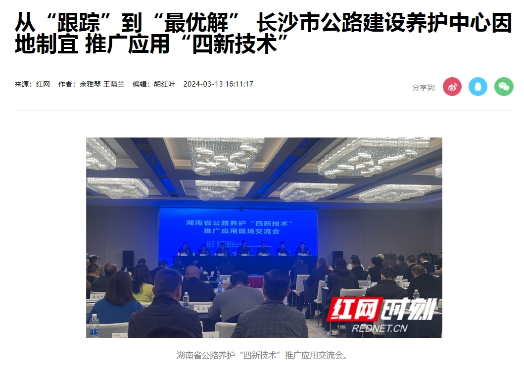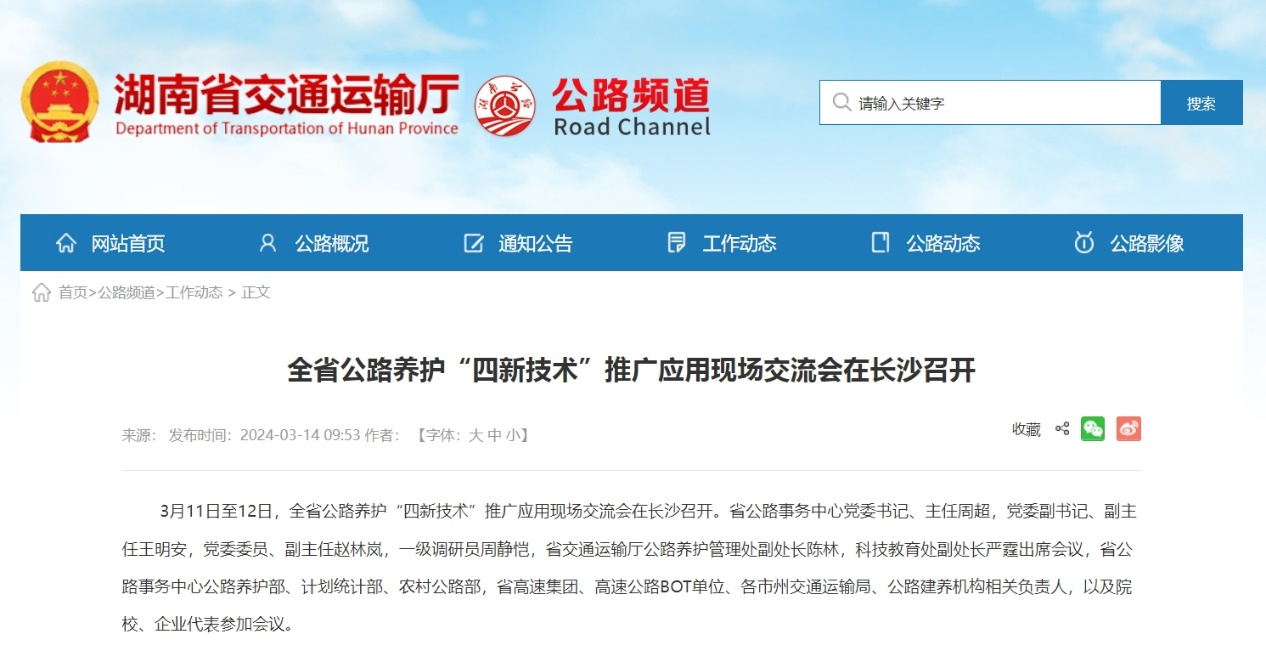 全省公路養護“四新技術”推廣應用現場交流會于2024年3月11日至12日在長沙召開。金旭科技作為“四新技術”企業代表受邀參會。